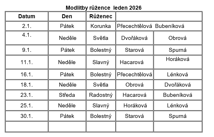 Rubriky Aktuality Modlitby růžence Autor příspěvku Autor: Miloš Pinkava Datum příspěvku 29. 12. 2025 ← Pastýřský list 28.12.2025 → Čtení při nedělních mších sv.
